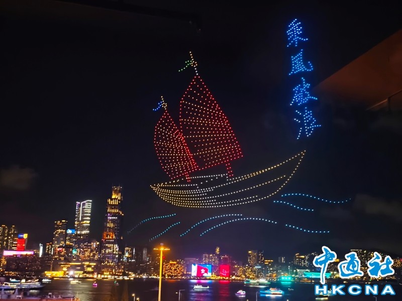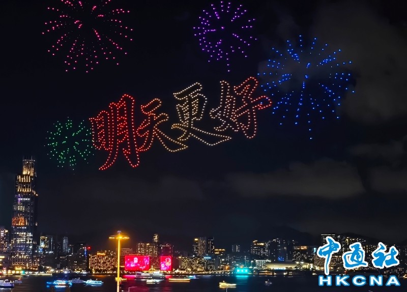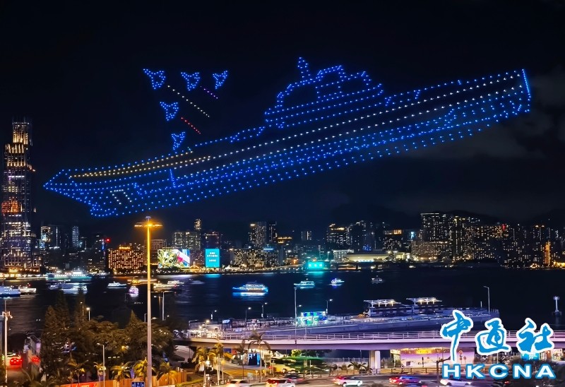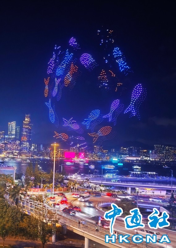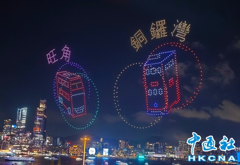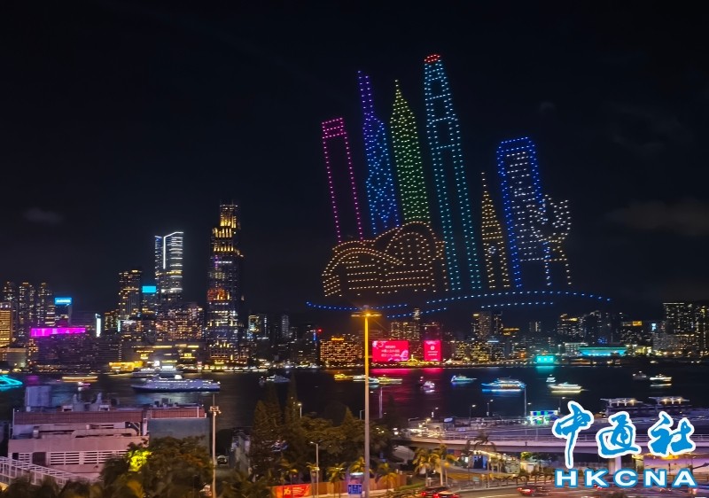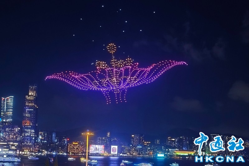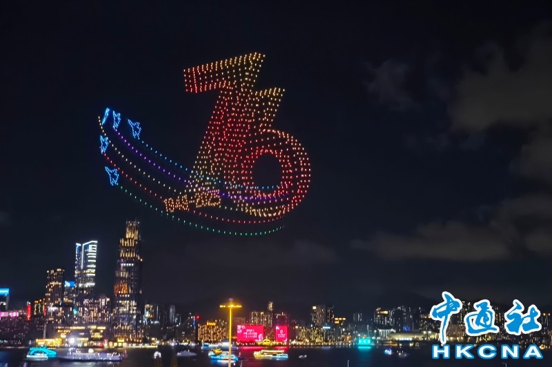 香港新闻网10月2日电(记者 洪少葵)10月2日晚上8时,1200架无人机群腾空而起,点亮湾仔海滨。由紫荆文化集团主办、紫荆杂志社承办的2025年国庆无人机表演准时启幕。本次表演以“庆祝中华人民共和国成立76周年”为主题,通过“科技+文化+艺术”的呈现形式,将香港与祖国密切相关的重大工程和盛事通过不断变幻的图案串连,通过15幕共计15分钟的表演为香港市民带来一场沉浸式的视听体验。