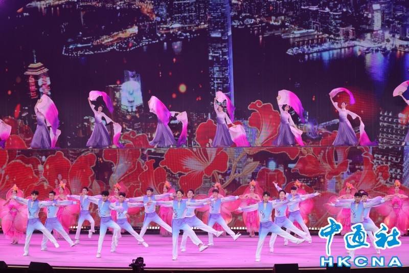 吉林市歌舞团、香港合艺舞蹈工作室、香港理工大学Hall Dance Team带来舞蹈《紫荆花盛开》,为文艺晚会表演拉开序幕