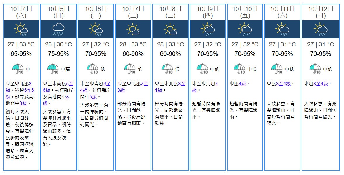 香港未来9天天气预报。香港天文台网站截图