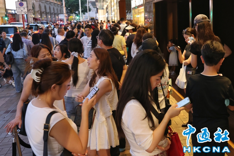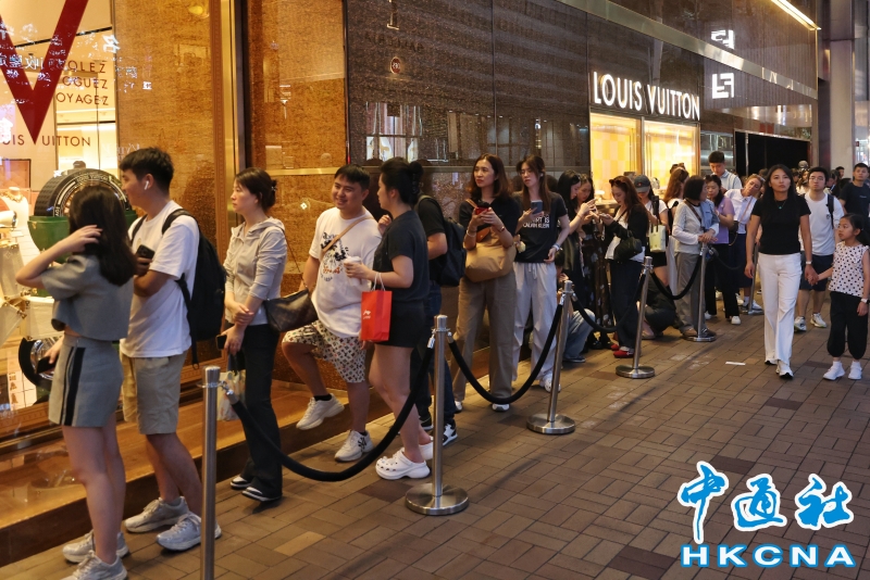 10月3日,香港尖沙咀一间名品店外大排长龙。内地国庆黄金周和中秋一连8日长假期,香港不少商业场所和旅游景点,游人如织,市道也很畅旺。(香港中通社记者 谢光磊 摄) 香港中通社图片