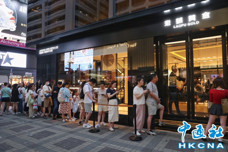 10月3日,香港尖沙咀一间金饰店外大排长龙。内地国庆黄金周和中秋一连8日长假期,香港不少商业场所和旅游景点,游人如织,市道也很畅旺。(香港中通社记者 谢光磊 摄) 香港中通社图片