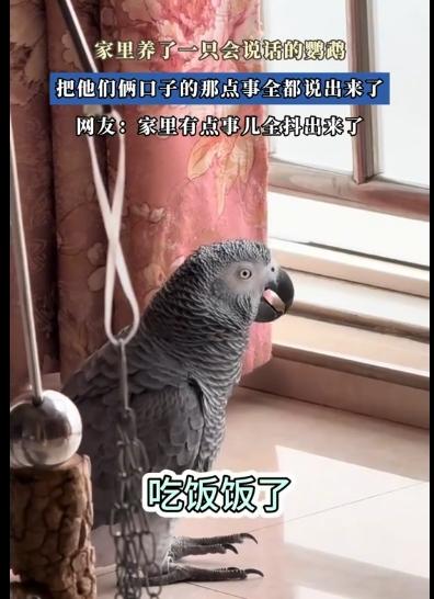 【鹦鹉把家里的事全抖出来了】近日,一则“鹦鹉学舌抖夫妻私房话”的视频在网络上迅速走红,引发无数网友围观热议。视频中,一只毛色鲜亮的鹦鹉在客厅里悠闲踱步,时不时蹦出几句让人忍俊不禁的话语:“狗狗来,我抓起来关起来”“漂亮媳妇儿,胖嘟嘟”“帅不帅”“老婆,过来找我啦”“老公,过来吃饭饭啦”……活脱脱一个家庭“小广播”,把夫妻俩的日常点滴全给抖搂了出来,让人不禁感叹:这鹦鹉成精了!起初,夫妻俩只是觉得鹦鹉模样可爱,想给家里添个活泼的小成员,没想到它很快就展现出了惊人的语言天赋。“最开始它只会学‘你好’‘再见’这些简单词,后来慢慢就开始模仿我们说话。”主人笑着回忆道。随着时间推移,它的“词汇量”越来越丰富,从日常的“吃饭饭”“睡觉觉”到夫妻间的甜蜜互动,它都能模仿得惟妙惟肖。网友像往常一样用手机记录它的学舌成果,当鹦鹉突然喊出“老婆,过来找我啦”时,两人对视一眼,瞬间笑作一团。这段视频被发到社交平台后,评论区里满是“求同款鹦鹉”“我家猫只会拆沙发”的调侃。