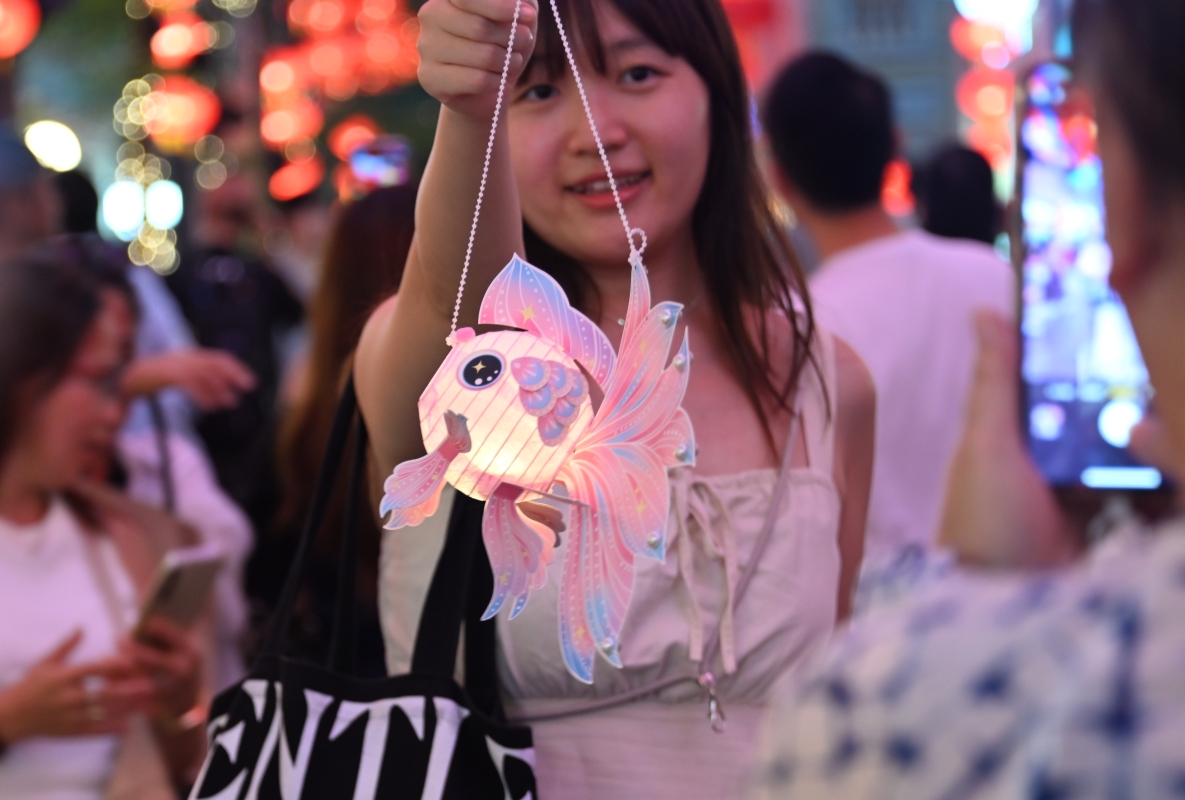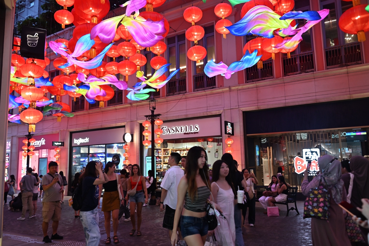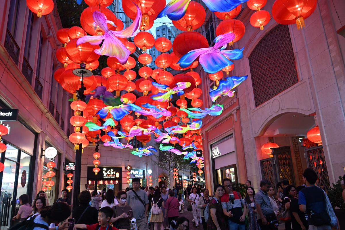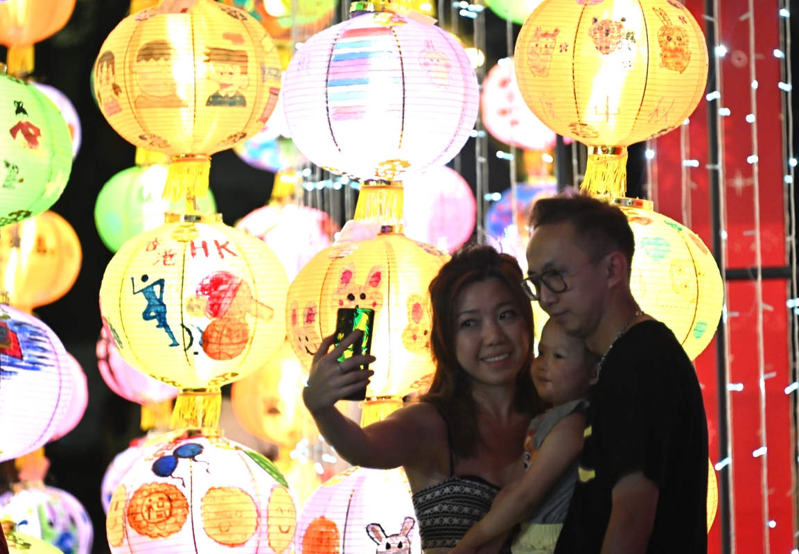 香港新闻网10月5日电(记者洪少葵)10月5日,内地“双节”旅游黄金周踏入第五天,赴港旅游热潮持续升温。大量旅客莅临香港度假休闲。当天晚上,中秋节前夕的香港湾仔利东街人山人海,红灯笼和金鱼彩灯为中秋节增添喜庆氛围。临近的一级历史建筑“蓝屋”点亮主题为“悦夜月蓝”的彩灯艺术装置,逾700个由香港艺术家和湾仔街坊手绘的花灯,吸引大批市民和游客欣赏和拍照打卡。在铜锣湾维园中秋节彩灯会更是内容丰富,除了展示不同主题的璀璨彩灯,亦会安排各式各样的活动,并加入非物质文化遗产的元素,如传统花灯扎作展示等,与大家共庆佳节。 中秋节正日(10月6日)将延长亮灯时间至凌晨12时。 据香港官方统计,自10月1日开始的黄金周首四天,内地访港旅客突破87.7万人次,较去年同期增长逾7%,同时海外旅客亦录得约12.6万人次,按年大幅上升超过30%,合计突破百万人次。