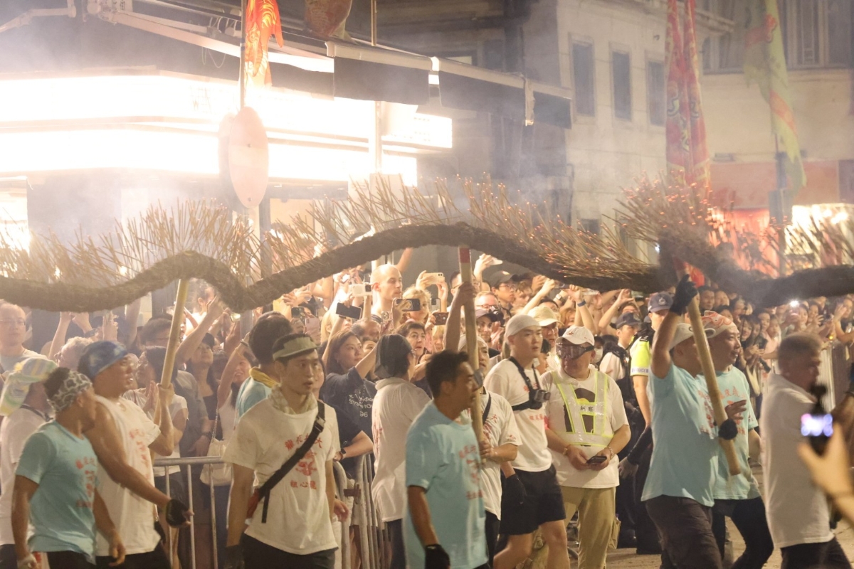 “大坑舞火龙”于香港铜锣湾大坑街区震撼上演。