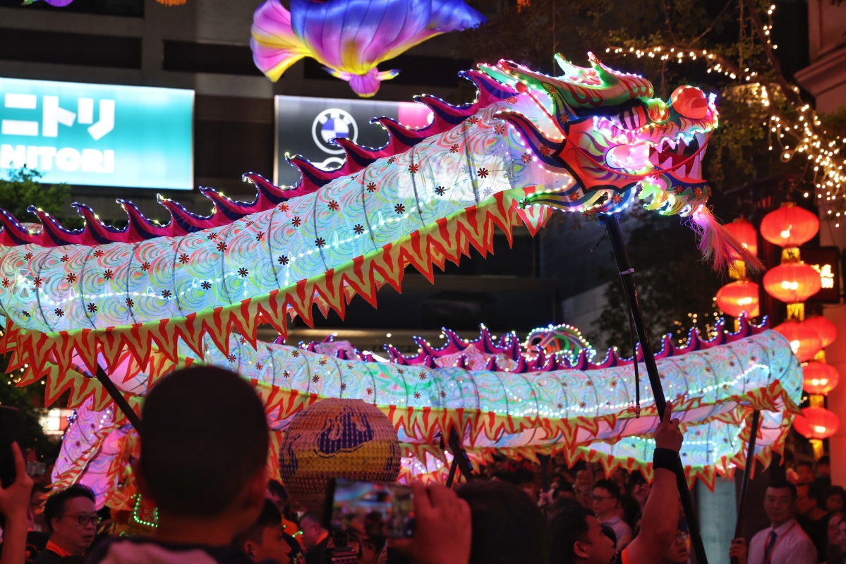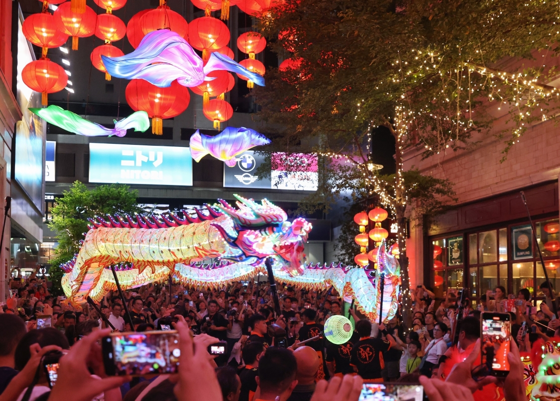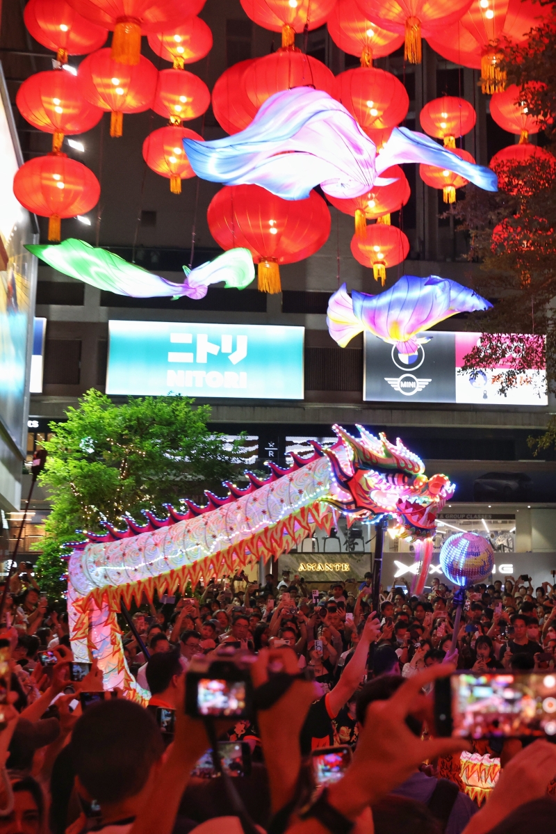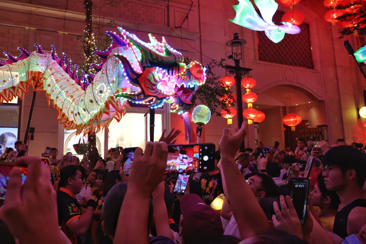 利东街“LED火龙舞鼓贺中秋”现场吸引大批市民和游客观赏。