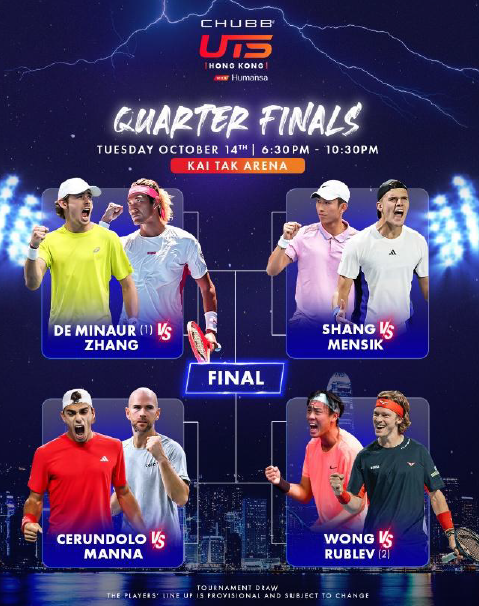“Chubb UTS Hong Kong 2025 with Humansa”赛程相当紧凑,10月14日将进行四场八强赛事,10月15日将进行名次赛、四强赛及决赛, 8 位网坛巨星均会于两日的比赛中为球迷献技。争夺极具标志性的宙斯雷霆冠军奖杯,赛事总奖金高达 110 万美元,冠军奖金为 30.6 万美元。