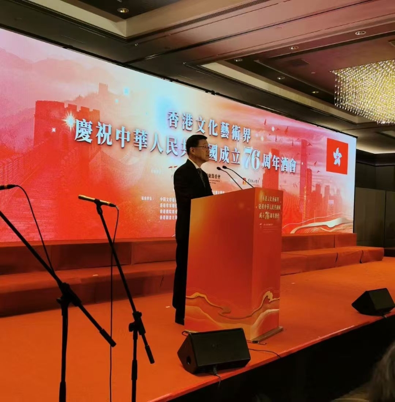 大家好!非常高兴出席今天的香港文化艺术界庆祝中华人民共和国成立76周年活动,与各位文艺界朋友聚首一堂,同贺国庆。