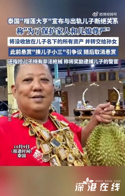 【泰国榴莲大亨与出轨儿子断绝关系】泰国榴莲大亨阿农·罗通在社交媒体上公开发布了一则令人震惊的悬赏:任何人对儿子情人“动手”,就能获得3万泰铢奖励。这场家庭伦理剧迅速演变成全国关注的公共事件。“我愿意给任何打我儿子情妇的人3万泰铢的赏金。你们必须至少扇她十个耳光。”这是泰国知名榴莲商人阿农·罗通近日在社交媒体上发布的惊人帖子。他声称,这项悬赏长期有效,直到女方同意结束与他儿子的关系。此举立即在泰国社交媒体上引发轩然大波,有人谴责其宣扬暴力,也有人赞赏他保护儿媳的举动。面对愈演愈烈的争议,阿农最终撤回了悬赏,并宣布与儿子断绝关系,没收放在儿子名下的所有资产,转交给孙女。