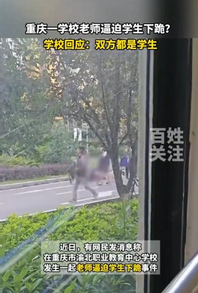 【曝一老师逼学生下跪?学校:都是学生】校园内一名学生双膝跪地,对着身穿迷彩服的人员磕头——这段视频在网络上迅速发酵,却隐藏着一个完全出乎人们想象的事实真相。2025年10月,重庆市渝北职业教育中心校园内,一则“老师逼迫学生下跪”的视频在网络上引发轩然大波。画面中,一名学生跪在身穿迷彩服的人员面前,不停地磕头,周围聚集了大量围观学生。这段视频很快在网络上传播开来,网友们义愤填膺的评论如潮水般涌来。然而,随着校方的正式回应,事情出现了惊人反转——这根本不是老师逼迫学生下跪,而是一场由充电宝引发的误会,涉事双方竟然都是学生!