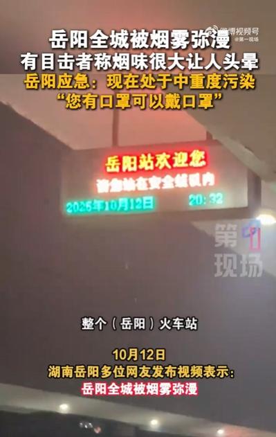 【湖南岳阳全城烟雾弥漫 有人头晕咳嗽】烟雾笼罩下的岳阳,市民们猝不及防地迎来了一场空气危机,城市天际线在浓烟中若隐若现。“烟味很大,让人头晕,很多人咳嗽。”10月12日晚,湖南岳阳多位市民在社交媒体上发布视频,反映城区被大量烟雾笼罩。一场突如其来的“烟雾锁城”事件,打破了周末夜晚的宁静。岳阳市生态环境局迅速回应称,这场空气污染源于上游地区大面积焚烧秸秆。受此影响,岳阳市空气质量自10月10日起已连续3天受到污染,特别是在12日20时起达到重度污染级别。