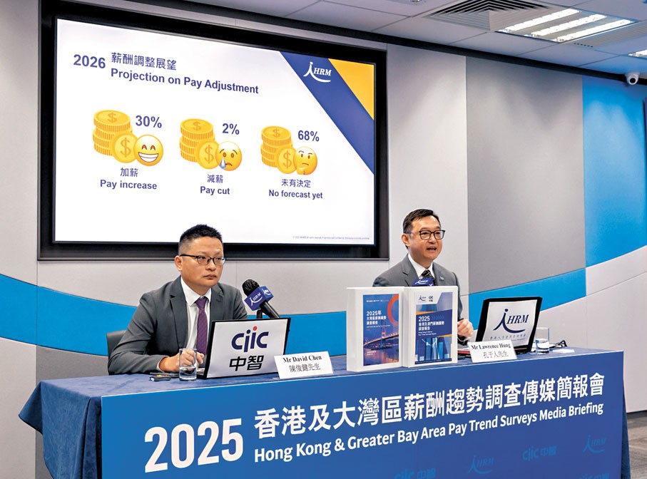香港人力资源管理学会公布最新薪酬调整趋势与展望。 香港人力资源管理学会提供