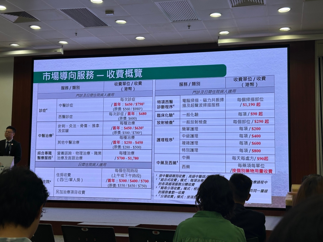市场导向服务收费方面,中医诊症首年收费介乎450及790港元,西医诊症为480港元。