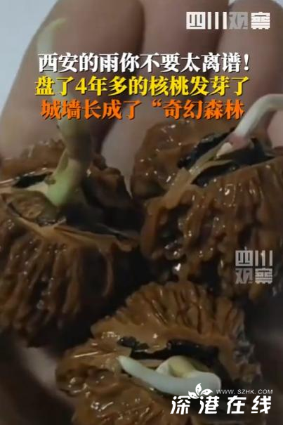 【西安雨雨雨 市民盘了4年的核桃发芽】一颗被主人精心盘玩四年的文玩核桃,在西安持续40多天的连阴雨中竟然抽出了嫩绿的新芽,这场意外的“枯核逢春”让文玩圈炸开了锅。“我当时脑子都懵了,这核桃我盘了三年,早以为是‘死物’了,怎么还能发芽?”西安文玩爱好者小李回忆发现核桃发芽时的情景,仍然觉得不可思议。2025年10月14日,一颗发芽的文玩核桃在西安市民的社交媒体上迅速走红,引发了全国网友的围观和调侃。这场被市民形容为“超长待机”的连阴雨已在西安持续了四十多天,不仅让街头多了几分潮湿的诗意,更催生了一系列令人啼笑皆非的趣事。文玩核桃发芽作为其中最具代表性的事件,迅速登上百度热搜,成为网友们热议的焦点。