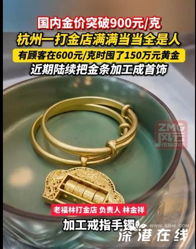 【杭州有人600元一克时囤了150万黄金】近期,国内金价突破900元/克,杭州一打金店满满当当全是人。打金店老板称,一位杭州本地顾客曾在金价600元/克时,花了150万元囤积黄金金条,近期正陆续将手中金条送来,加工成戒指、手镯等首饰。打金店老板同时提到,当前新入手黄金的消费者并不算多,但黄金回收量较以往最少翻了两三倍。今天国内金价方面,上海黄金交易所现货黄金和沪金主力合约盘中最高价分别为960元/克和960.42元/克。这场跨越两年的黄金投资盛宴,不仅折射出国际金价的历史性飙升,更引发了公众对资产配置与风险控制的深度思考。