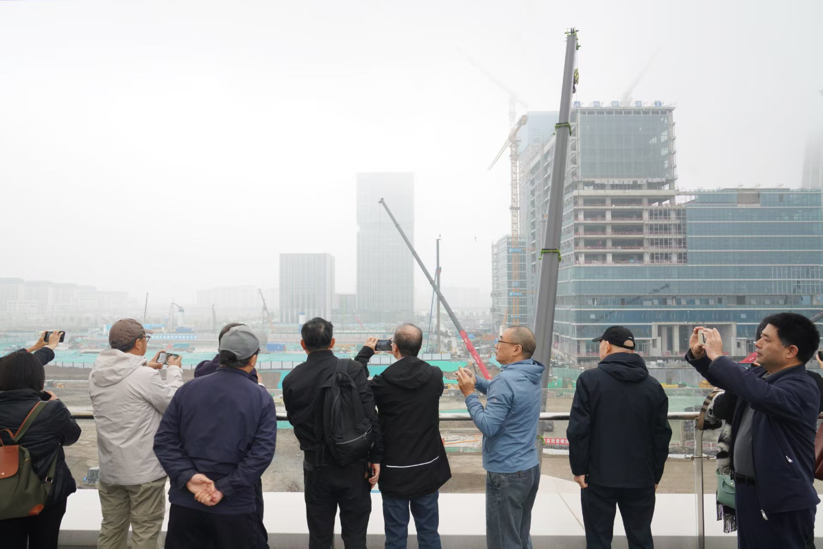 登上东西轴线雄安城际站调度指挥中心的平台,参访团成员们被眼前火热的建设场景吸引。“很期待几年之后再来雄安,见证雄安的新变化”。参访团成员们在现场纷纷拿起手机拍照留念。