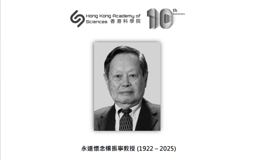 哀悼文章指出:“杨教授自2015年香港科学院成立之初即为本院荣誉院士。他在粒子物理学领域的开创性研究,对现代物理发展影响深远,更于1957年荣获诺贝尔物理学奖,成就卓著。”