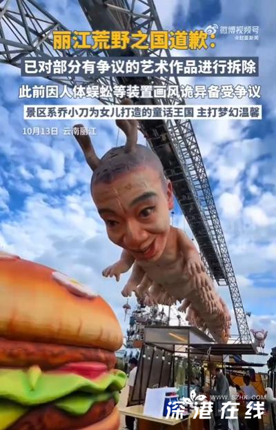 这场争议始于10月上旬,当时有网友发布短视频,称云南丽江“荒野之国”景区内 “人体蜈蚣”“三面女孩”等雕塑造型诡异,让人产生不适。这些照片和视频在网络上迅速传播,引发了广泛关注。有网友直言不讳地表示,这些装置与景区宣传的“温馨”氛围不符,甚至有人用 “阴间” 来形容这些作品。争议声中,景区工作人员最初回应称,荒野之国是艺术家乔小刀为女儿打造的童话王国,主打“梦幻温馨”。对于网络上的差评,工作人员解释是 “部分博主故意调色所致” ,并强调“为什么要撤掉作品呢?这个是园区内的艺术装置”。