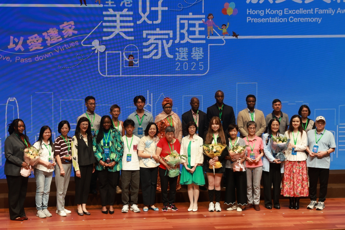 香港新闻网10月19日电 ( 图文 邓梓杰 )10月19日,香港特区民政及青年事务局联同家庭议会在香港赛马会演讲厅举行全港美好家庭选举颁奖典礼。本次颁发的奖项有美好家庭奖共10名,良好家教家风传承奖共5名,旨在以“建立稳固家庭关系 树立良好家教家风”为重点,向普罗大众宣扬良好家庭核心价值。