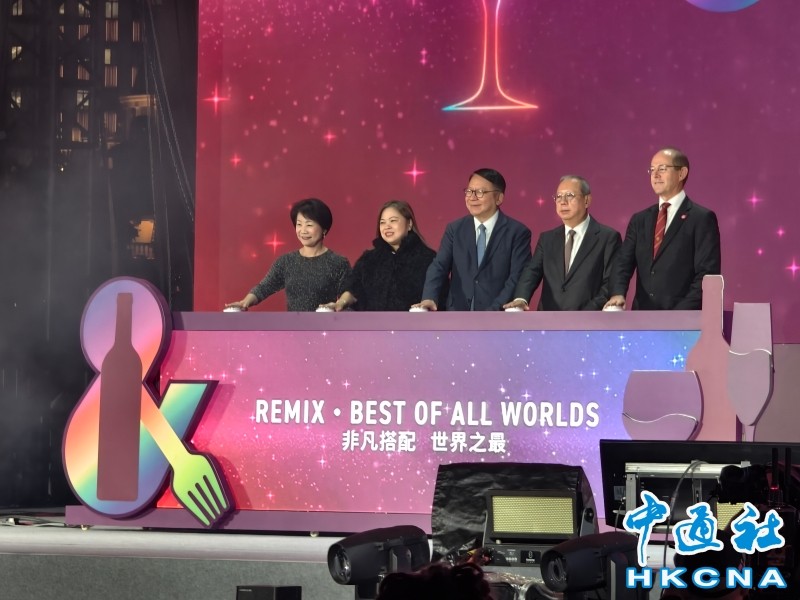 一众主礼嘉宾为香港美酒佳肴巡礼开幕。香港中通社记者 梁嘉轩摄