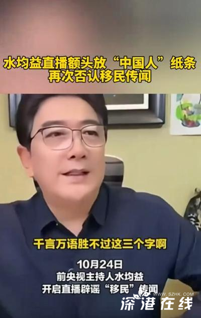 辟谣!水均益头顶“中国人”纸条否认移民 前央视主播开直播辟谣移民传闻!