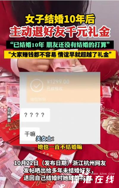 女子结婚10年后主动退好友千元礼金