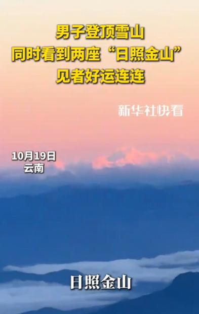 男子登顶雪山同时看到两座日照金山