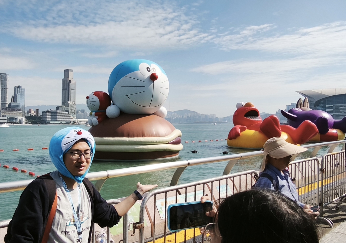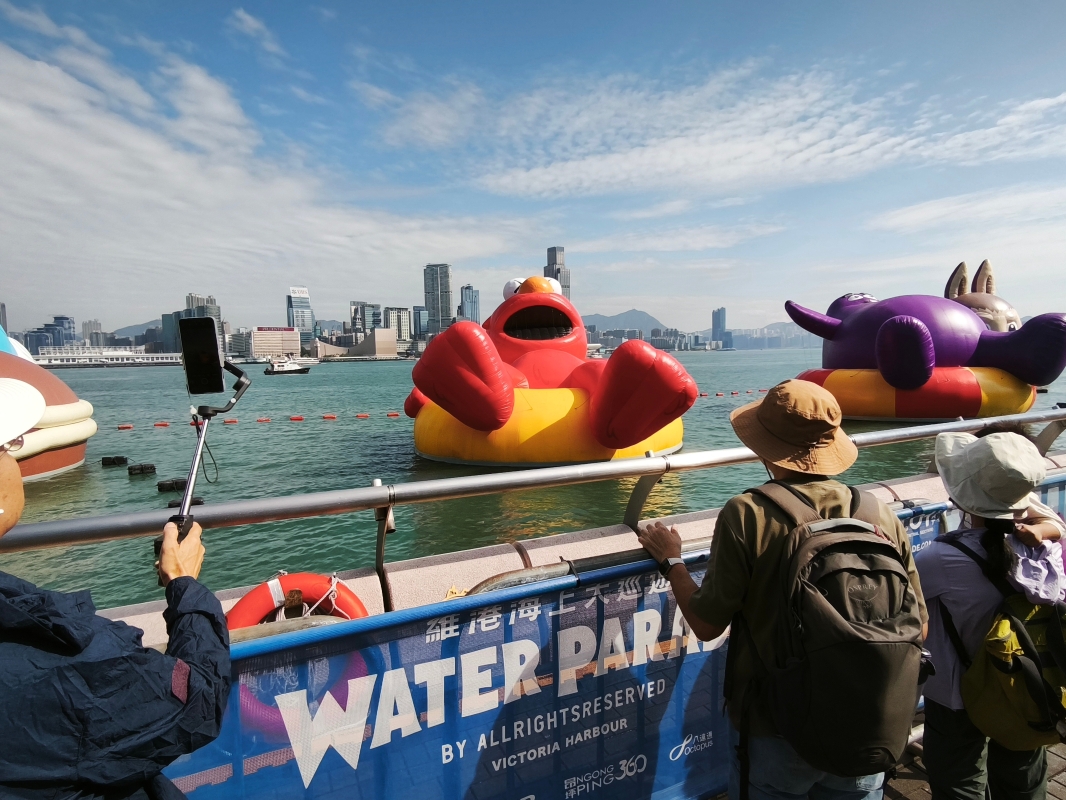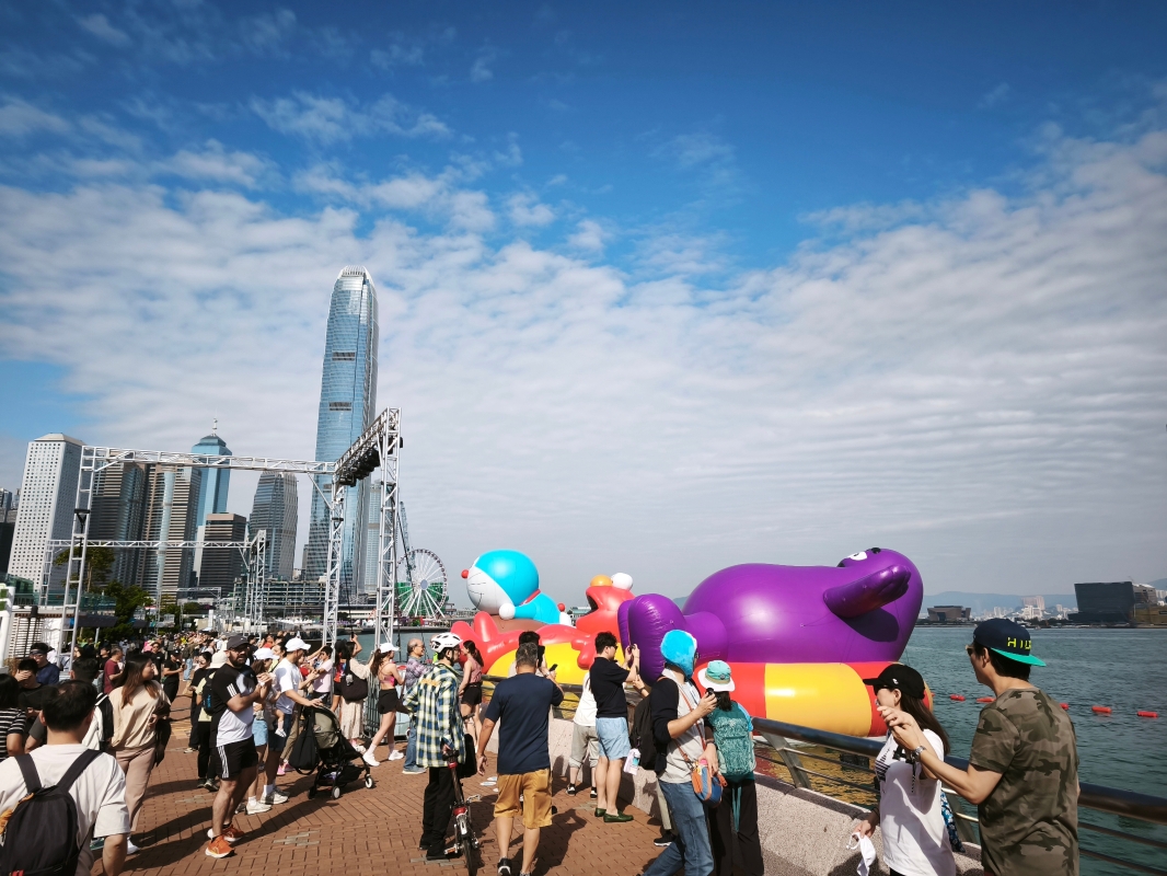 巨型海上充气雕塑公仔成为市民与游客争相“打卡”之处
