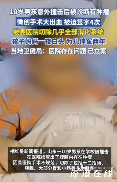 痛心!山东10岁男孩术后消化系统被切除 母亲哭诉:孩子现在不能吃不能喝,只能靠静脉营养!