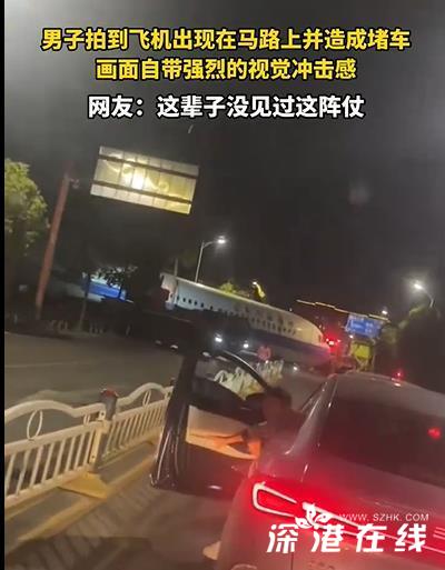 男子拍到飞机出现在马路上