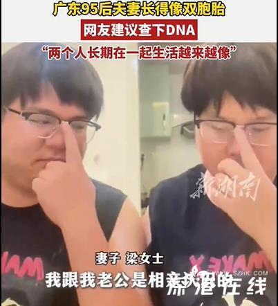 【广东夫妻像双胞胎 网友建议查下DNA】近日,广东东莞95后的何先生、梁女士夫妇的账号引发了网友们的围观,被称为“史上最相似夫妻”。梁女士称,她和丈夫是2022年春天相亲认识的,当时彼此并不觉得长得像。后来越来越多的人说他们长得像,结婚后尤其如此,他们自己也承认了。梁女士认为,两个人长期在一起生活就会越来越像,这种说法不是没有道理。