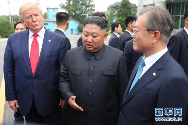 朝鲜最高领导人金正恩(左二)与美国总统特朗普(左一) 图源:新华社