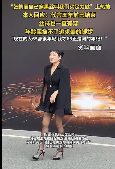 张凯丽的回应直指争议核心。她明确澄清代言关系已终止五年,并强调“年龄阻挡不了追求美的脚步”。这一表态获得部分网友支持:“63岁穿黑丝是打破老年刻板印象”“瘦时有灵气,胖时有底气,每个年龄段都有追求美的权利”。但也有声音质疑,即使代言到期,其过往塑造的“老年友好”形象仍可能误导消费者对品牌的认知。