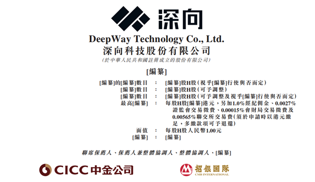 香港新闻网11月7日电 11月6日,深向科技股份有限公司(简称:DeepWay深向)向港交所递交招股书,拟在香港主板上市,联席保荐人为中金公司和招银国际。
