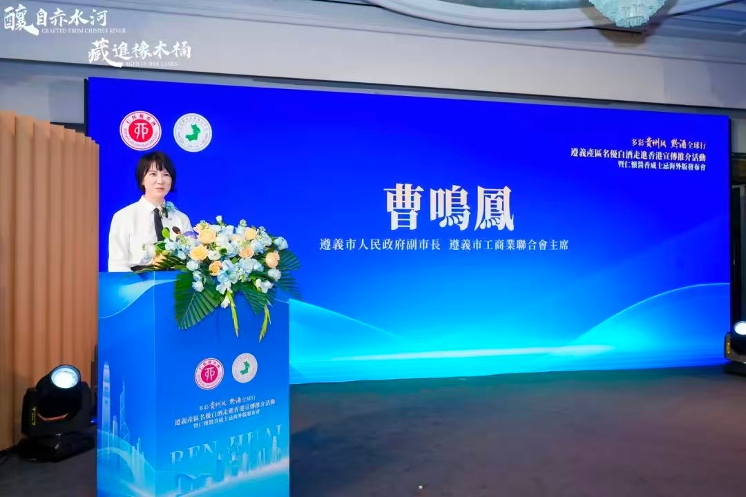 遵义地处北纬27度云贵高原北部,赤水河蜿蜒数百里,造就了独一无二、不可复制的酿酒生态环境。得天独厚的自然禀赋孕育了绿色健康的遵义白酒,千百年来,当地坚守传统工艺、追求极致品质,匠心传承铸就了高品质酱酒。遵义市副市长、市工商联主席曹鸣凤在致辞中表示,遵义白酒借助香港平台开拓国际市场,目前产区白酒出口势头强劲,远销全球60个国家和地区。此次走进香港,不仅带来了醇厚的名优白酒,更秉持共赢的开放姿态,并提出三点倡议:一是共建“全球出海枢纽”,让更多遵义白酒通过香港走向全球,共享出海红利;二是共促“产业能级跃升”,推动白酒产业数字化转型、品牌国际化升级,实现从“产品出口”到“品牌输出”的跨越;三是共筑“文化交流桥梁”,联合举办酱酒品鉴会、文化交流等活动,增进世界酒文化交融互鉴。