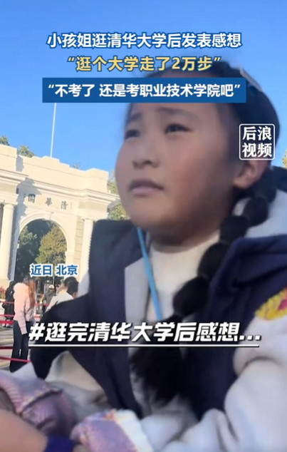 【小孩姐逛清华暴走2万步直呼不考了】“学校太大,逛了一天走了快两万步,还是考职业技术学院吧,可以少走些路。” 这段由一位小女孩在参观清华大学后的感慨,配上她疲惫又可爱的表情,迅速在短视频平台走红。事件发生在 2025 年 11 月 9 日的北京清华园。一位小女孩在参观清华大学校园时,一天内行走近两万步,巨大的运动量让她直呼放弃报考清华的想法。清华大学位于北京市海淀区清华园,占地面积达 482.84 公顷,相当于近 7000 亩土地,如此广阔的校园,即使是短暂游览,也需要相当的体力支撑。小女孩在结束参观后,带着疲惫却认真的表情表示,自己改变主意了,决定 “还是考职业技术学院吧,可以少走些路”。