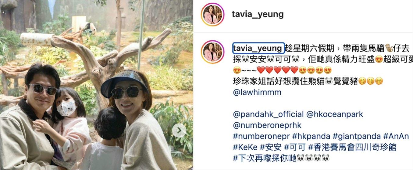 翻看社交平台IG,陈敏之、林夏薇、林盛斌、黎诺懿等香港艺人亦纷纷前往海洋公园探望“安安”“可可”。