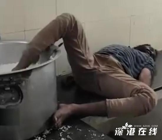 印度大学保安将脚伸进食堂米锅搅动