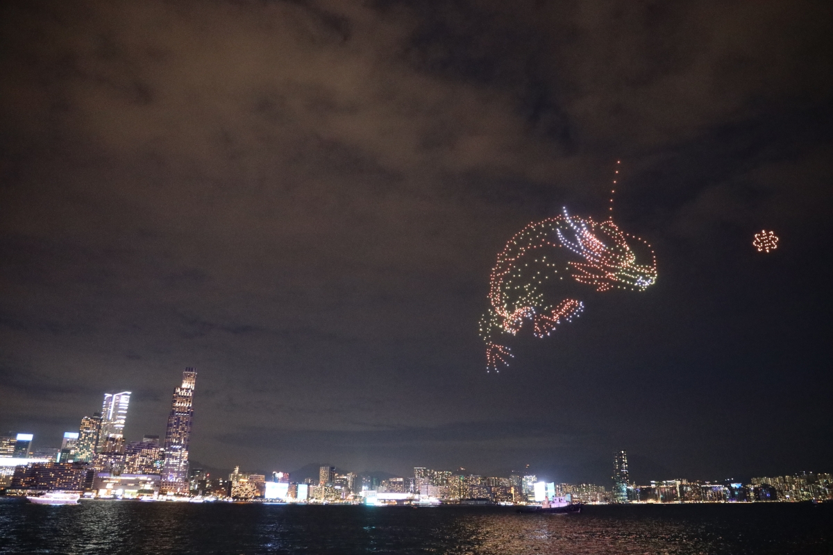 迎接《鳄鱼》香港首演 湾仔海面无人机灯光秀