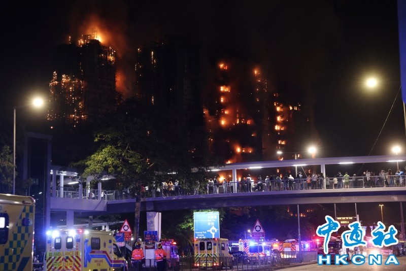 香港新闻网11月16日电 (记者 谢光磊/梁嘉轩)11月26日,香港大埔宏福苑发生五级火警,宏昌阁外墙棚架率先起火,其后蔓延至宏泰阁及宏新阁等大厦。截至傍晚8时,火警造成13人死亡15人伤。其中9人在现场证实死亡,有4人送抵医院后不治。一名消防员在火警中殉职。