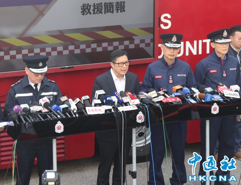 11月28日,保安局局长邓炳强会见传媒。香港中通社资料图片