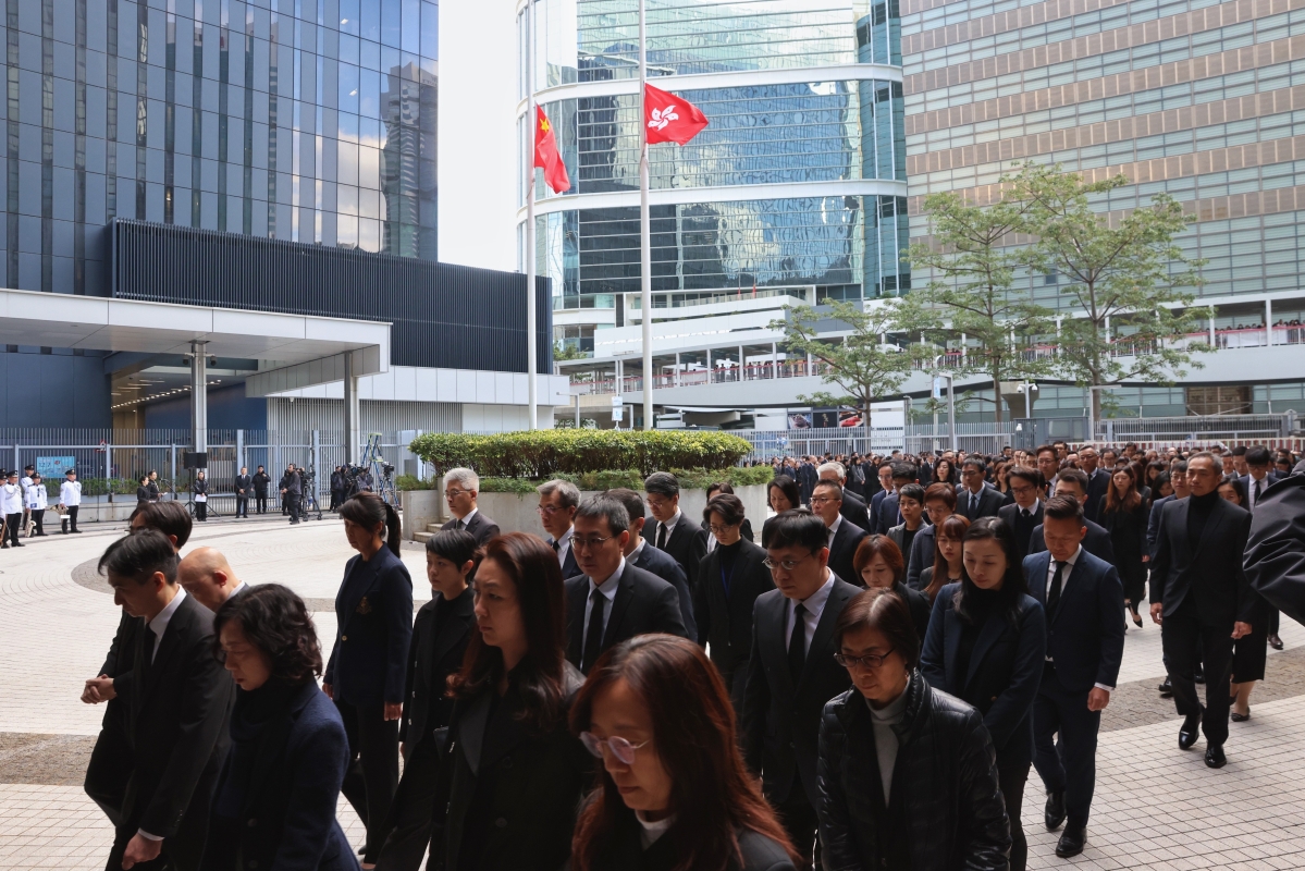 香港特区政府主要官员、行政会议非官守议员及公务员在政府总部沉痛哀悼在大埔火灾不幸罹难的人士。