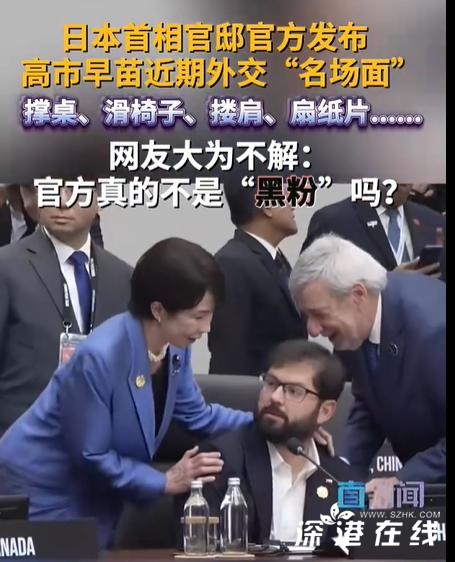 【日本官方发布高市名场面 网友:黑粉】近期,日本首相官邸官方社交媒体账号发布的一则视频,将首相高市早苗推上国际舆论的风口浪尖。视频剪辑了其在韩国庆州APEC会议期间与多国领导人互动的“高光时刻”,却因画面中撑桌、滑椅子、搂肩等夸张肢体语言,被网友戏称为“年度最尴尬外交名场面”,甚至引发“官方是否为黑粉”的集体质疑。这场由官方策划的“宣传秀”,意外成为全球网民审视日本外交失态的放大镜。视频中,高市早苗的外交互动堪称“行为艺术合集”:与澳大利亚总理阿尔巴尼斯交谈时,她单手撑桌、身体前倾,姿态随意得如同办公室闲聊;向马来西亚总理安瓦尔打招呼时,隔着数米距离便挥舞手臂,热情程度令对方略显错愕;与印尼总统普拉博沃交谈时,她直接手扶桌沿滑动椅子靠近,途中不慎撞到印尼外长的手肘,场面一度尴尬;最引发争议的是与智利总统博里奇的互动——初次见面便主动搂住对方肩膀,这种突破常规的肢体接触,在国际外交场合实属罕见。日本网民率先发起“吐槽攻势”。推特上,话题“高市外交灾难”迅速登上热搜榜首,网友纷纷留言:“官方账号这是要黑到底吗?”“外交不是综艺节目,滑椅子搂肩膀太不严肃!”更有细心者翻出高市早苗此前涉台错误言论,指出其“既无外交智慧,又失战略定力”。国际网友也加入嘲讽行列,韩国网民调侃:“日本首相在APEC表演单口相声?”欧洲媒体则评论:“当外交礼仪变成肢体喜剧,暴露的是国家形象的崩塌。”