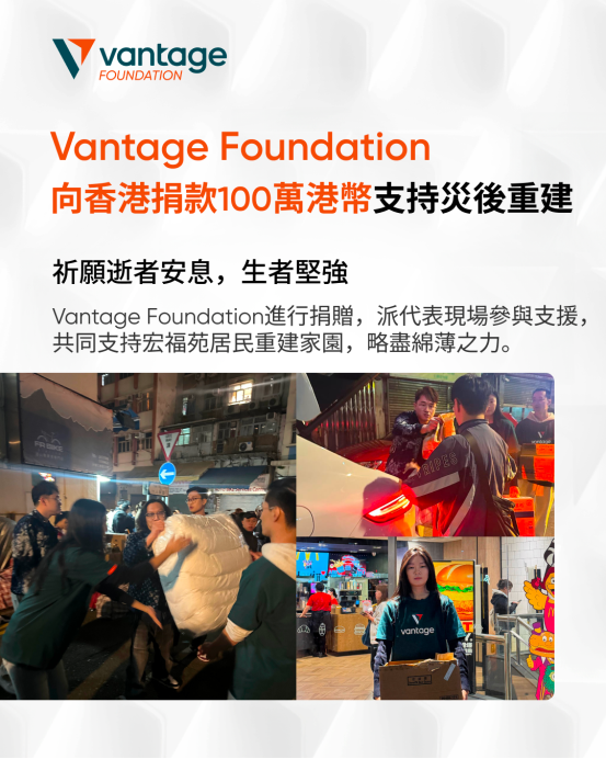 “在 Vantage,我们认为在危机时刻支持社区是我们必须承担的责任。宏福苑火灾令许多家庭深受影响,我们希望这笔捐款能够帮助他们加快恢复。我们也为主动前往现场表达支持的团队成员感到自豪,他们展现的同理心与凝聚力正是我们企业价值的重要体现。”