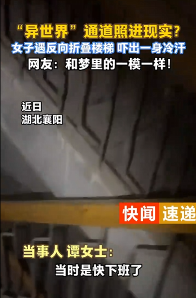 【女子遇反向折叠楼梯吓出一身冷汗】近日,湖北襄阳的谭女士在下班时因电梯迟迟未到,便打着手电筒走楼梯下楼。手电筒的光斑在黑暗中摇晃,照亮了一段前所未见的楼梯结构——两段楼梯如锯齿般反向折叠、交错排布,谭女士瞬间吓出一身冷汗。这一幕被分享到网络后迅速引发热议,许多网友表示“第一次见到这种设计”“晚上遇到确实会吓到”。