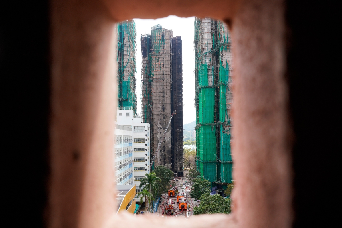 大埔宏福苑五级火警第六日警方继续在现场搜证