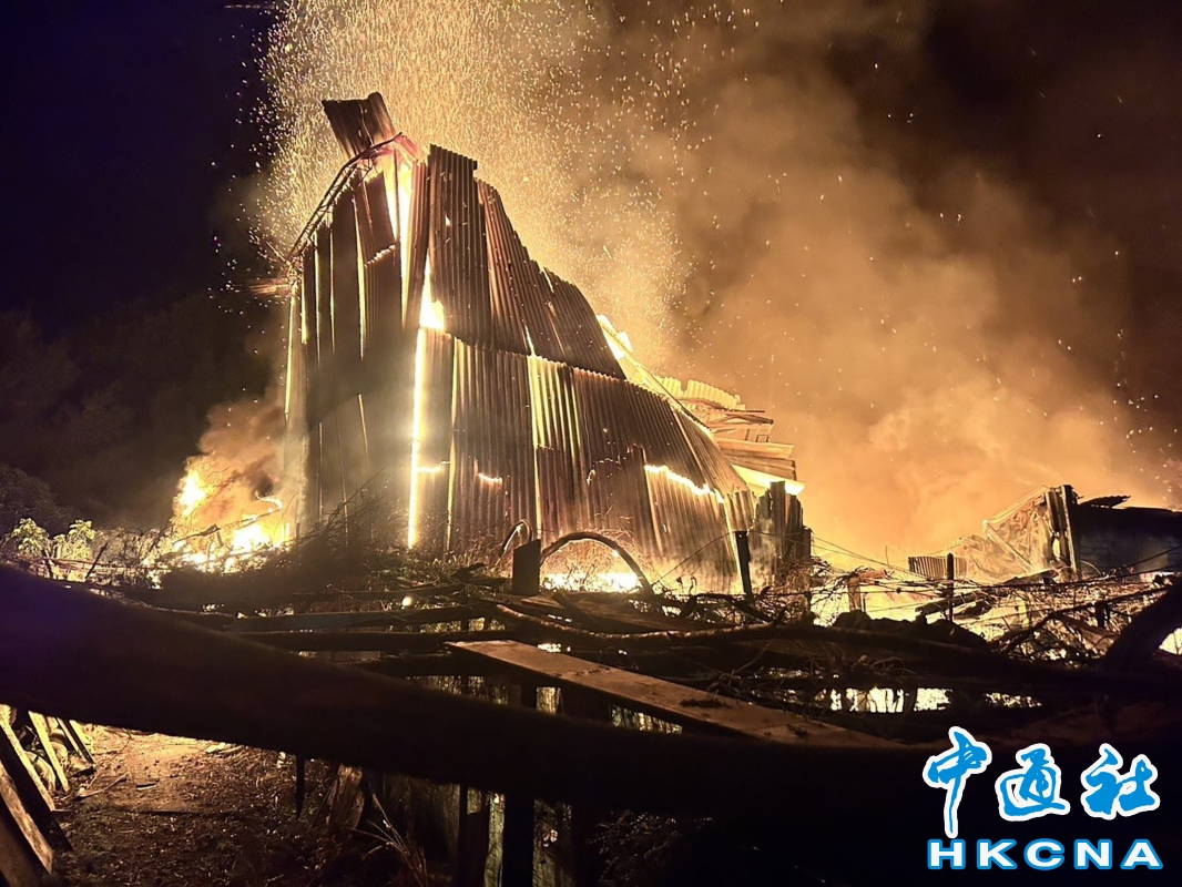 台湾台中市东势区一处果园内2层楼的铁皮屋工寮于12月1日深夜11时左右发生火警,由于火势迅速蔓延、铁皮屋被烧得仅剩骨架。消防人员抵达后,共花了30多分钟将火势扑灭。香港中通社图片
