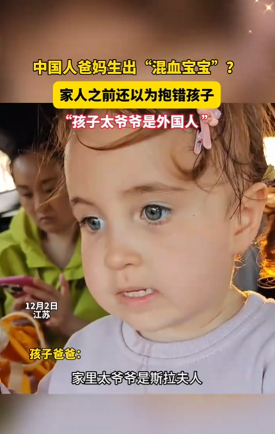 【江苏爸妈生出混血娃娃】近日,一则“江苏爸妈生出混血娃娃”的消息登上了网络热搜。一对江苏夫妻生下一个金发碧眼、高鼻梁的可爱女婴,外貌特征酷似“洋娃娃”。令人惊奇的是,从孩子的爷爷奶奶、外公外婆到爸爸妈妈,祖上三代都是地地道道的中国人。这看似不可思议的家庭奇闻,在揭开尘封的家族记忆后,向人们生动演绎了遗传学上“隔代遗传”或“基因返祖”的强大与神秘。