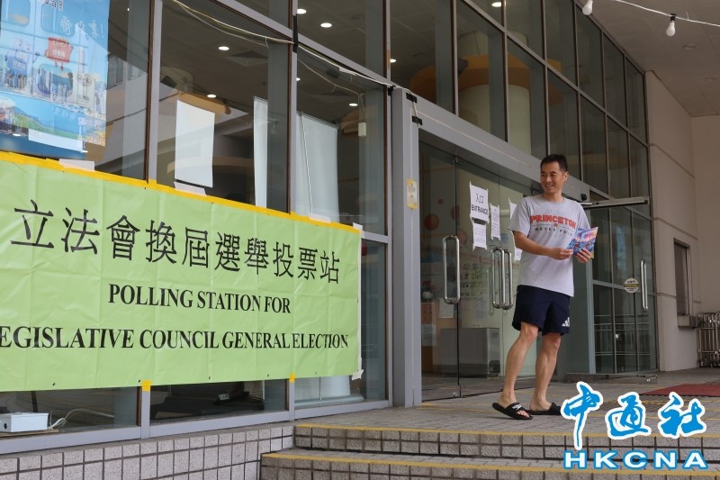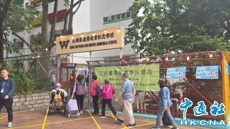市民从深圳、厦门专程返港前往上水香港道教联合会邓显纪念中学的边境投票站投票。(香港中通社记者 徐嘉仪摄)