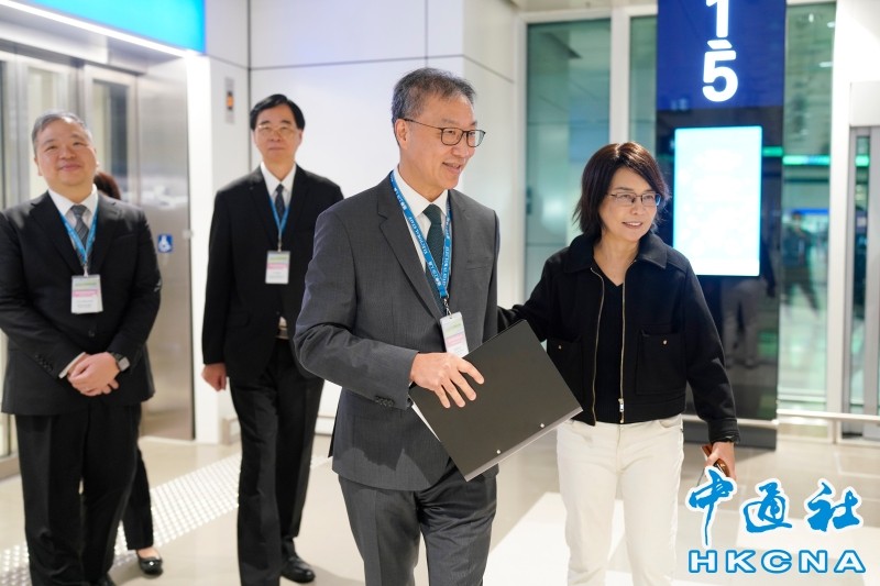 香港行政长官李家超到高主教书院投票站投票(陈奕启 摄)