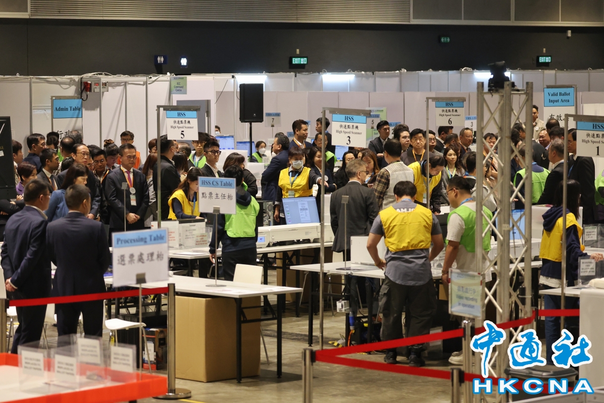 12月7日香港立法会换届选举工作人员陆续分类和点算选票。(记者 谢光磊 摄)